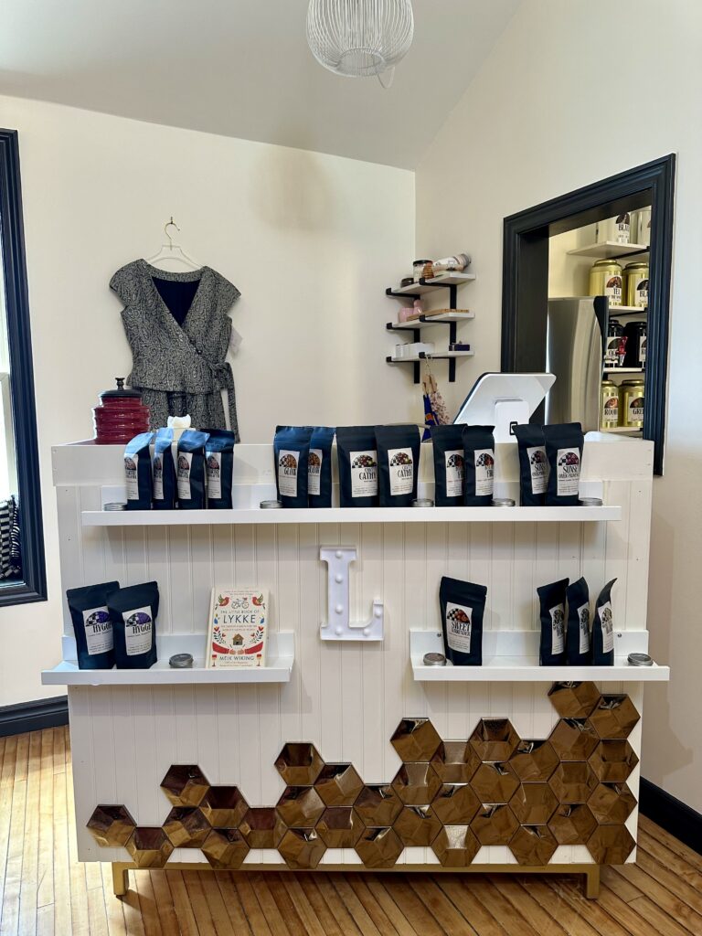 Together, they shaped that vision into The Leonor, a warm, imaginative space featuring curated preloved books, a tea room with seating for 25 people, a boutique of unique upcycled clothing, and ultimately an intimate event venue. Most of the boutique’s offerings—loose-leaf teas and candles created by Lauren and Sara-Jeanne, art, cards, jewellery, and more—are 90% local or Canadian-made.