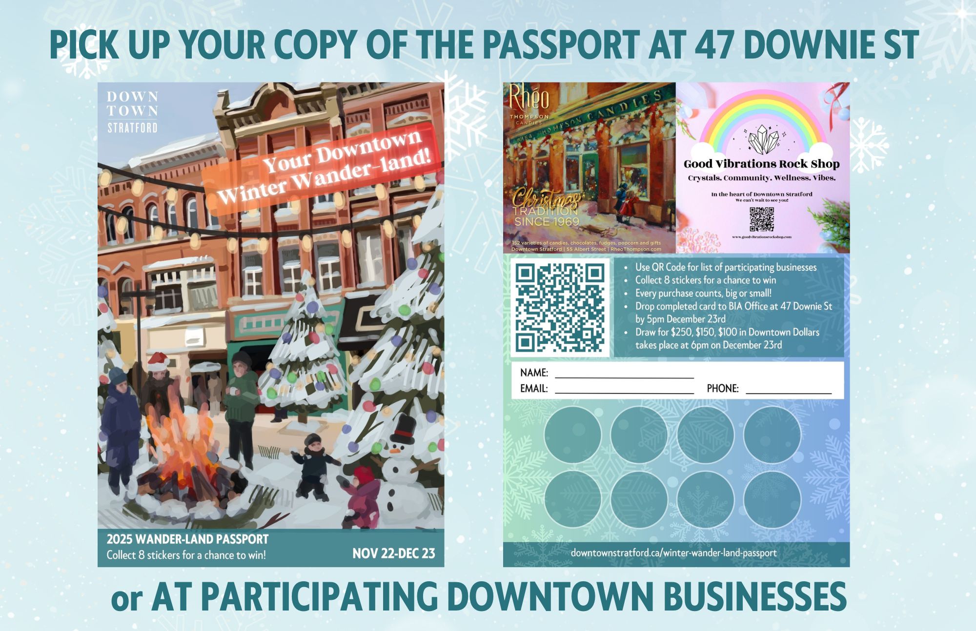 Drop passports off to 47 Downie Street by Monday, December 23rd at 5pm. Draw will occur on December 23rd at 6pm. Winners will contacted directly.